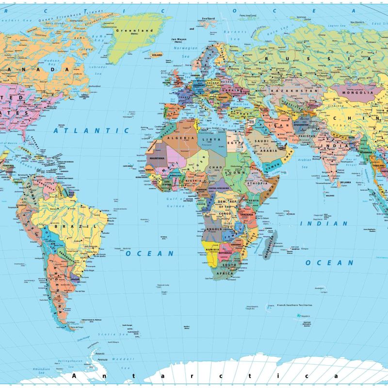 World Political Map Colour Custom Print Mural