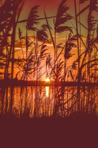 Sunset Lake Through Reeds Custom Print Mural